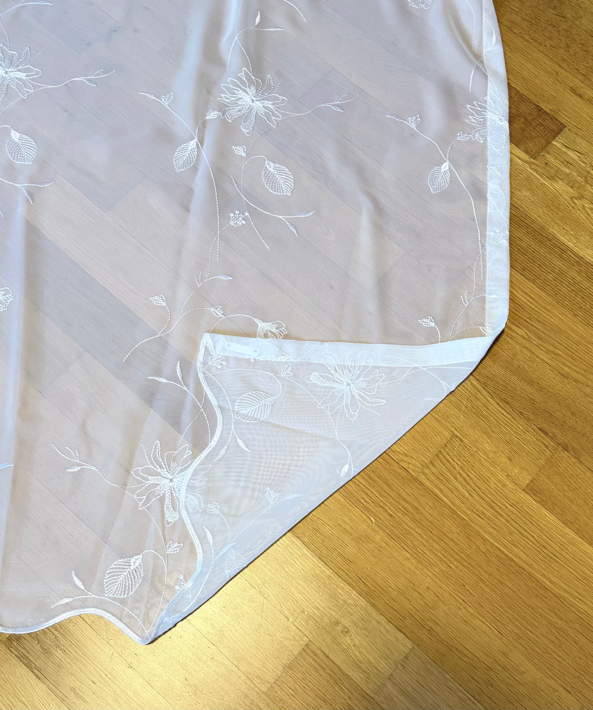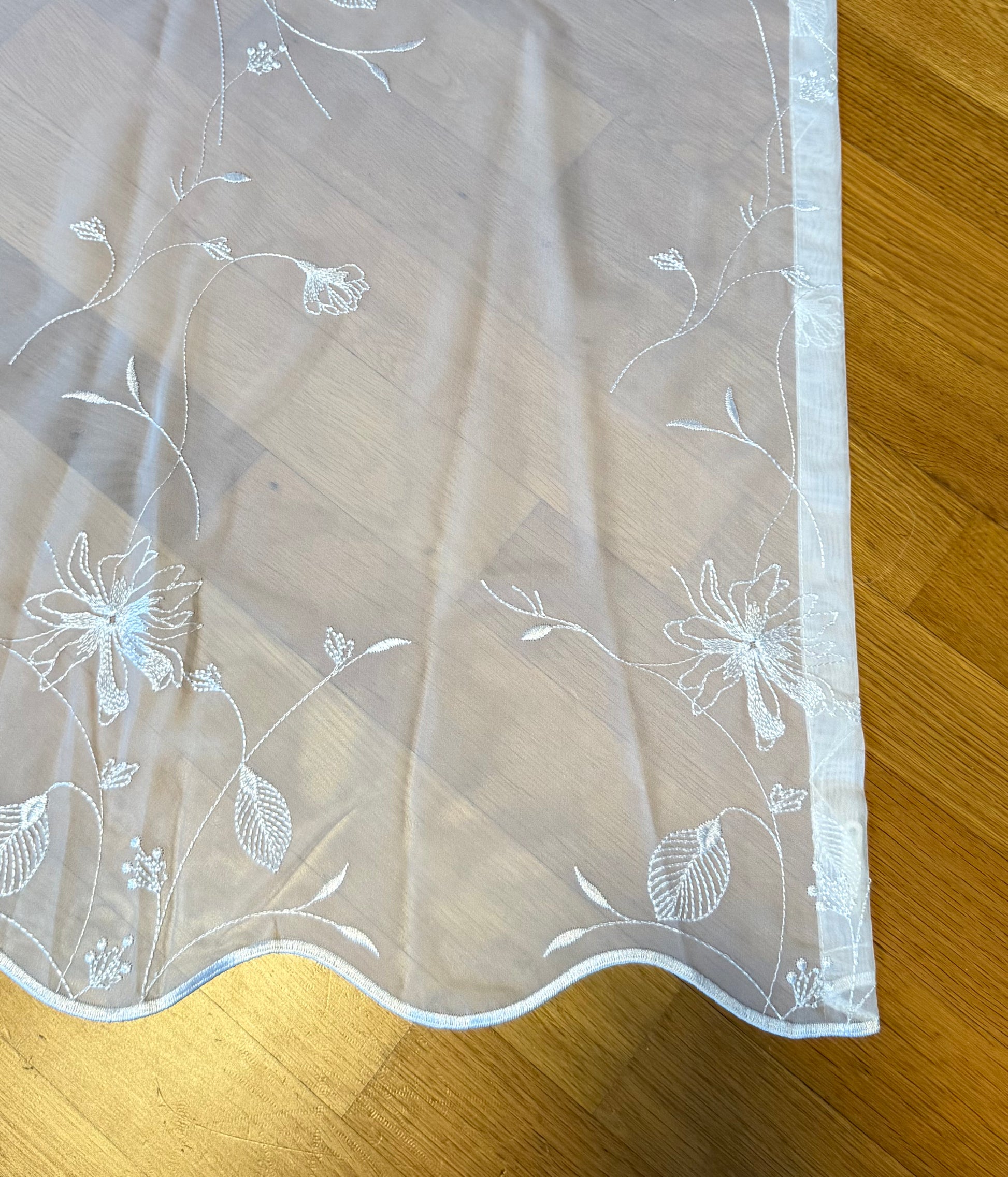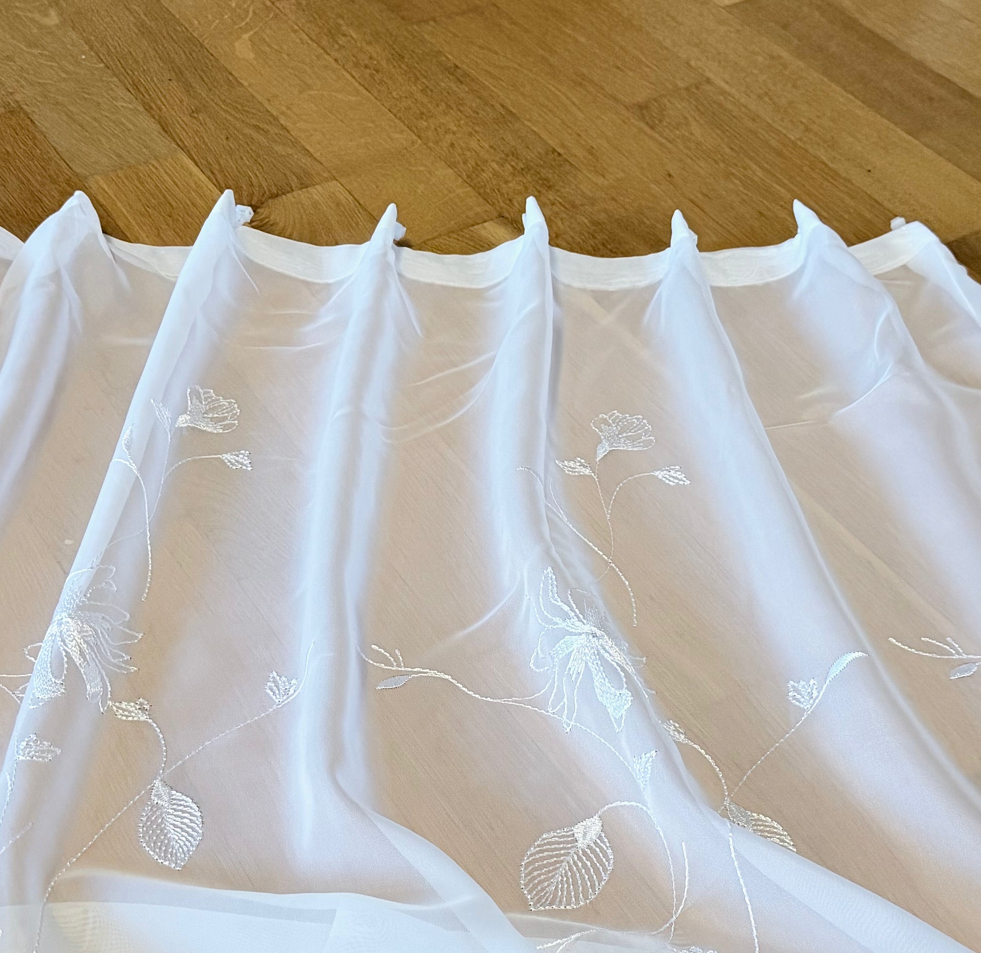 Der Tagesvorhang ROSABELLA präsentiert sich in hellem, elegantem Weiß und verleiht jedem Raum eine warme, florale Ausstrahlung. Die transparente, fein gewebte Oberfläche sorgt für ein lichtdurchflutetes, freundliches Wohnklima und lässt sich mühelos mit unterschiedlichen Einrichtungsstilen kombinieren. Das zarte Blumenmuster zieht sich harmonisch über den Stoff und erinnert an fein gezeichnete Blüten und sanfte Blütenranken. Die Gestaltung wirkt feminin, elegant und ausgewogen und macht ROSABELLA zu einem leichten Sichtschutz am Tag sowie zu einem stilvollen, dekorativen Highlight für Ihr Zuhause.